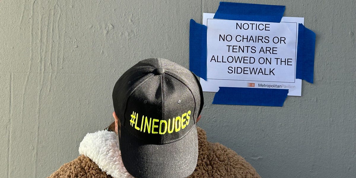 بدأ روبرت صموئيل، البالغ من العمر 50 عامًا، شركة Same Ole Line Dudes في عام 2012 ووصف حدث The Row بأنه “Super Bowl لجميع نماذج المبيعات”. لقد تم بيعه بـ 61 حجزًا يوم الأربعاء وكان لديه 35 حجزًا يوم الخميس. يدفع العملاء 25 دولارًا للساعة بالإضافة إلى 15 دولارًا إضافيًا إذا كانوا يريدون شخصًا ما في الطابور قبل الساعة 7 صباحًا، بالإضافة إلى رسوم الطقس العاصف أو العطلات.