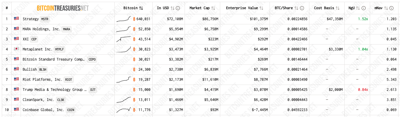 شركات خزينة البيتكوين المتداولة علنًا / المصدر:bitcointreasuries.net