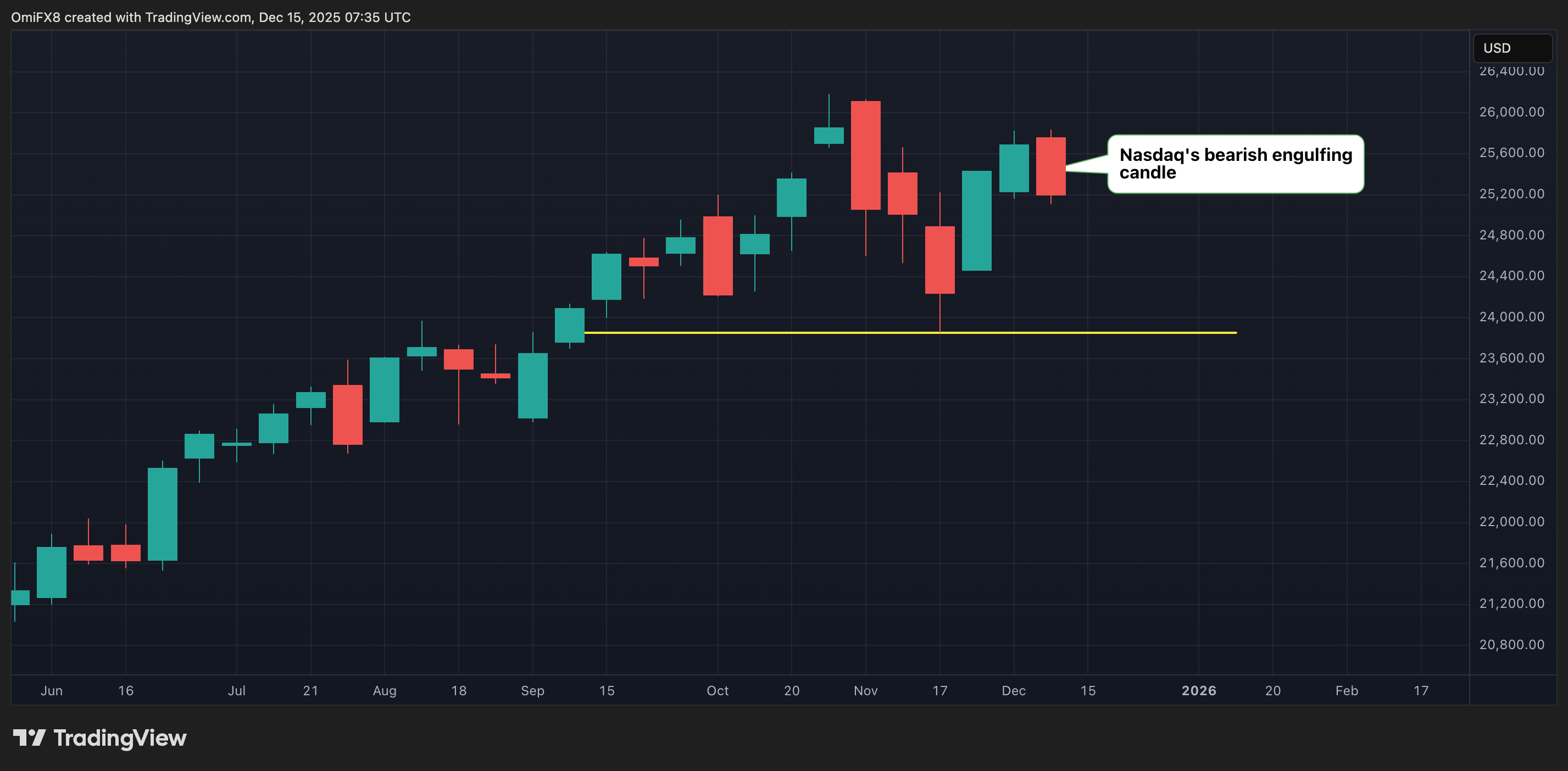 الرسم البياني الأسبوعي لناسداك. (TradingView)